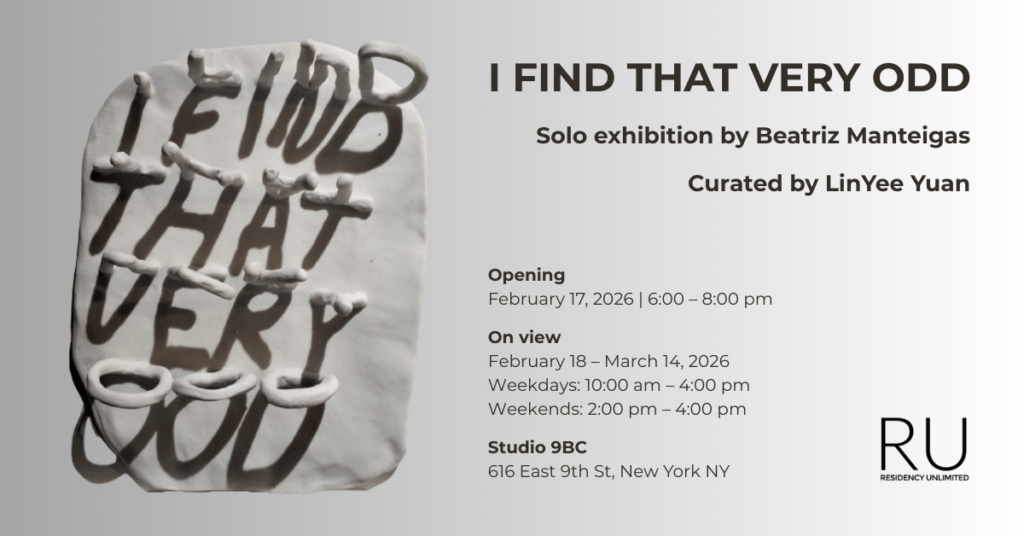 Opening reception: Tuesday, February 17, 2026 | 6:00 pm – 8:00 pm On view: February 18 – March 14, 2026 | Weekdays 10am–4pm, Weekends 2–4pm Visits available by appointment: contact merica.may@graymatters.work Location: Studio 9BC, 616 East 9th St, New York, NY 10009 (map) Please join us for RU resident artist Beatriz Manteigas’ first solo exhibition […]