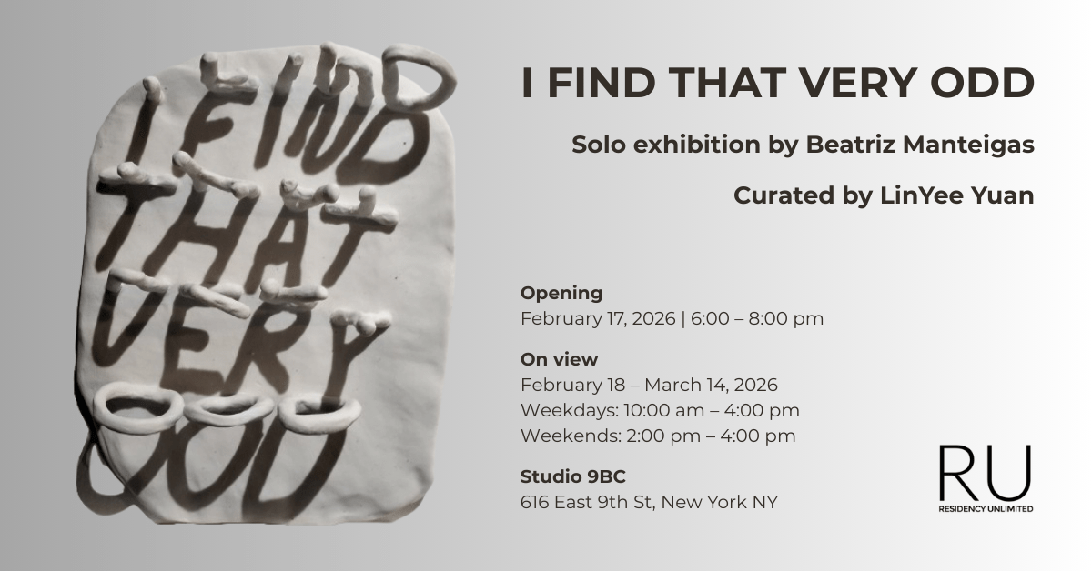 Please join us for RU resident artist Beatriz Manteigas’ first solo exhibition in New York City – I FIND THAT VERY ODD – presented at Studio 9BC, curated by LinYee Yuan.