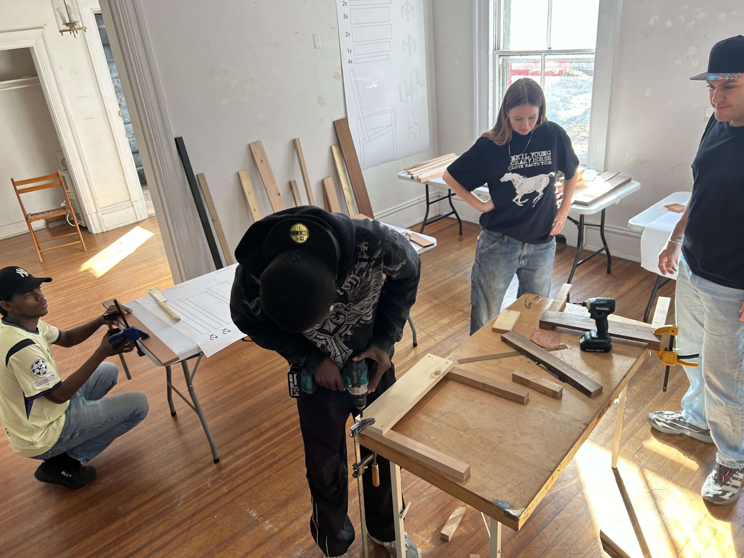 During the workshops, participants explored making as a reflection of experience and identity in New York City. They worked across a range of 2D representation and 3D fabrication techniques, from paper making with materials foraged at the GrowNYC Teaching Garden on Governors Island, to building chairs and lamps with offcuts of reclaimed/sustainably harvested wood donated by Brooklyn-based workshop & millworks, Tri-Lox. The resulting design objects from these workshops (chairs, lamps, drawing) were featured in the concluding exhibition Dialog by Design at RU in December 2025.